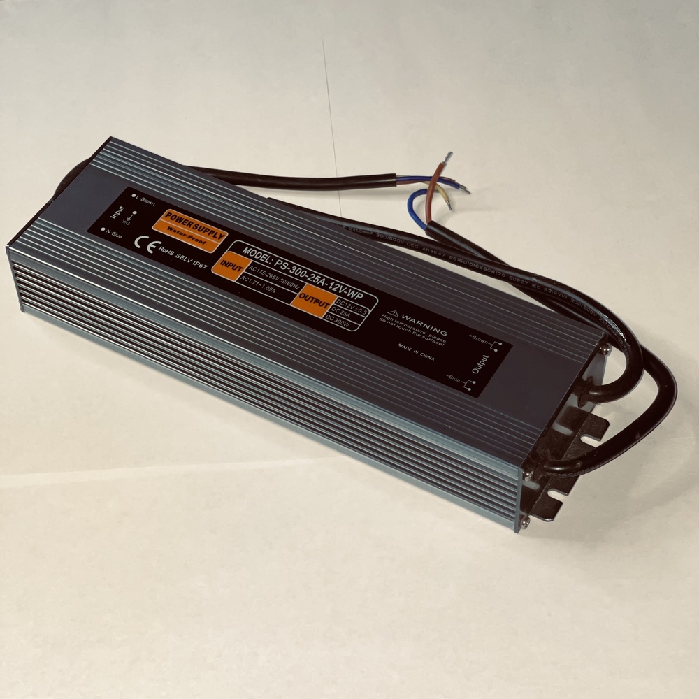 Для наружного использования рекомендуется использовать блок питания герметичный в корпусе из алюминия, стойкий к температурным и погодным изменениям и осадкам. Блок питания 12В имеет мощность 300Вт и ток на выходе 25А. Габаритные размеры устройства составляют: 23x75x40мм. Гарантия от производителя 1 год!