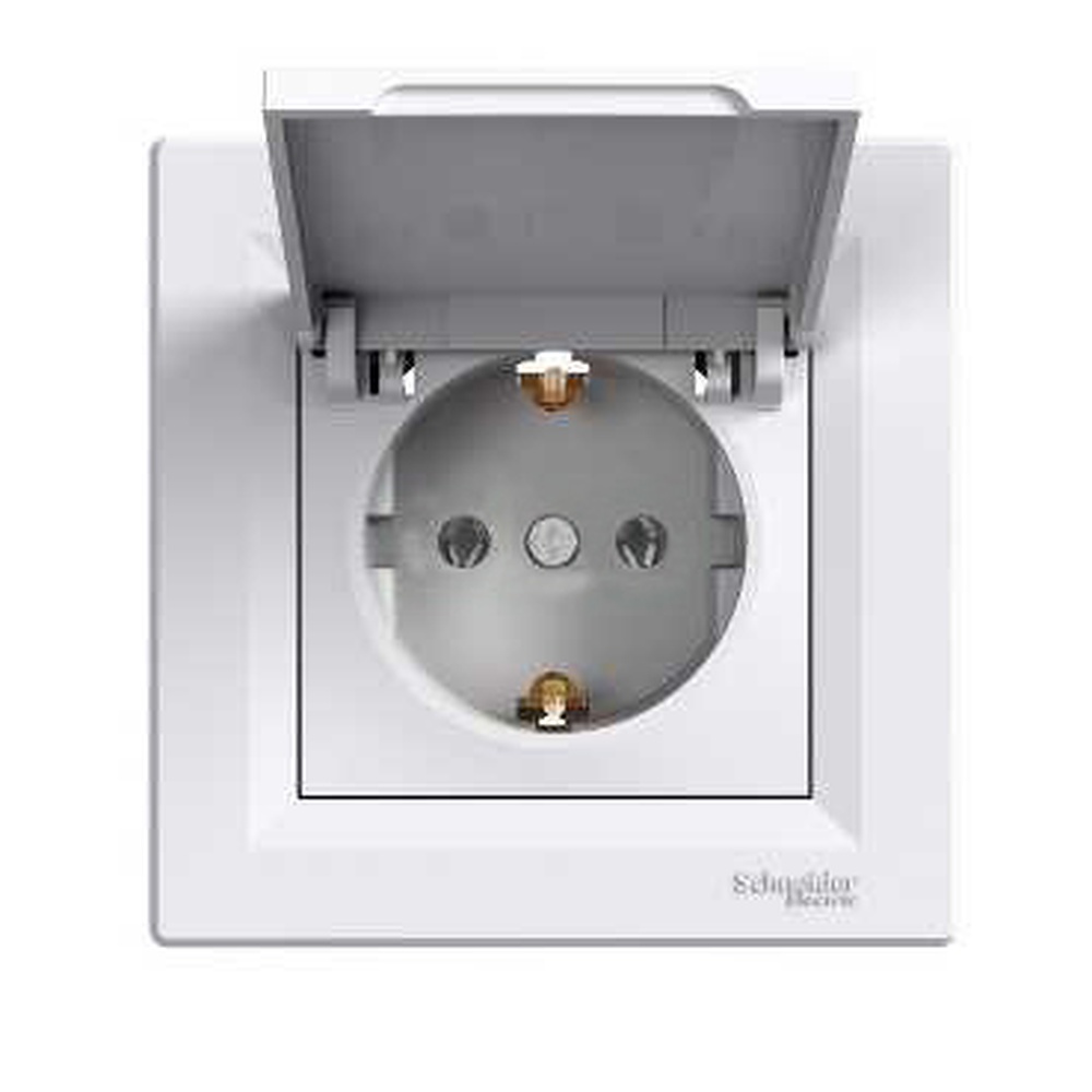 Розетка Shneider Asfora с заземлением и крышкой белый