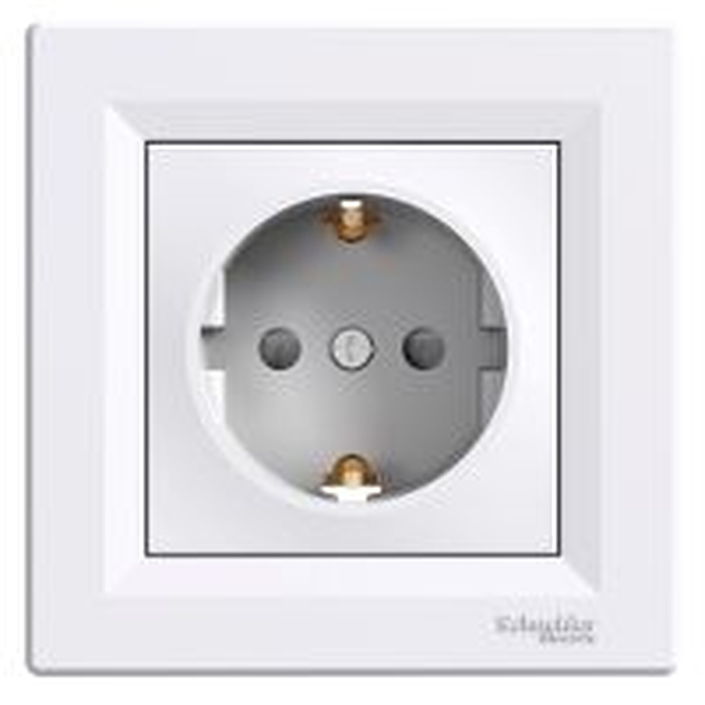 Розетка Shneider Asfora с заземлением и защитными шторками белая
