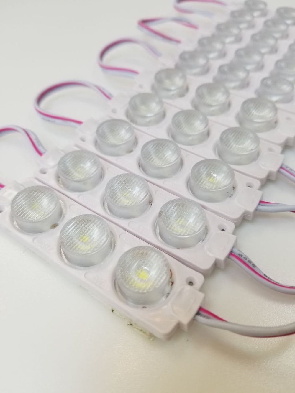 Светодиодный торцевой модуль 12В - современное и удобное решение для подсветки и наружной рекламы. Led-модуль 3030-3 led с диодоами типа «бочка» обеспечивают угол свечения 120 градусов. Тип корпуса герметичный, со степенью защиты от влаги IP65.